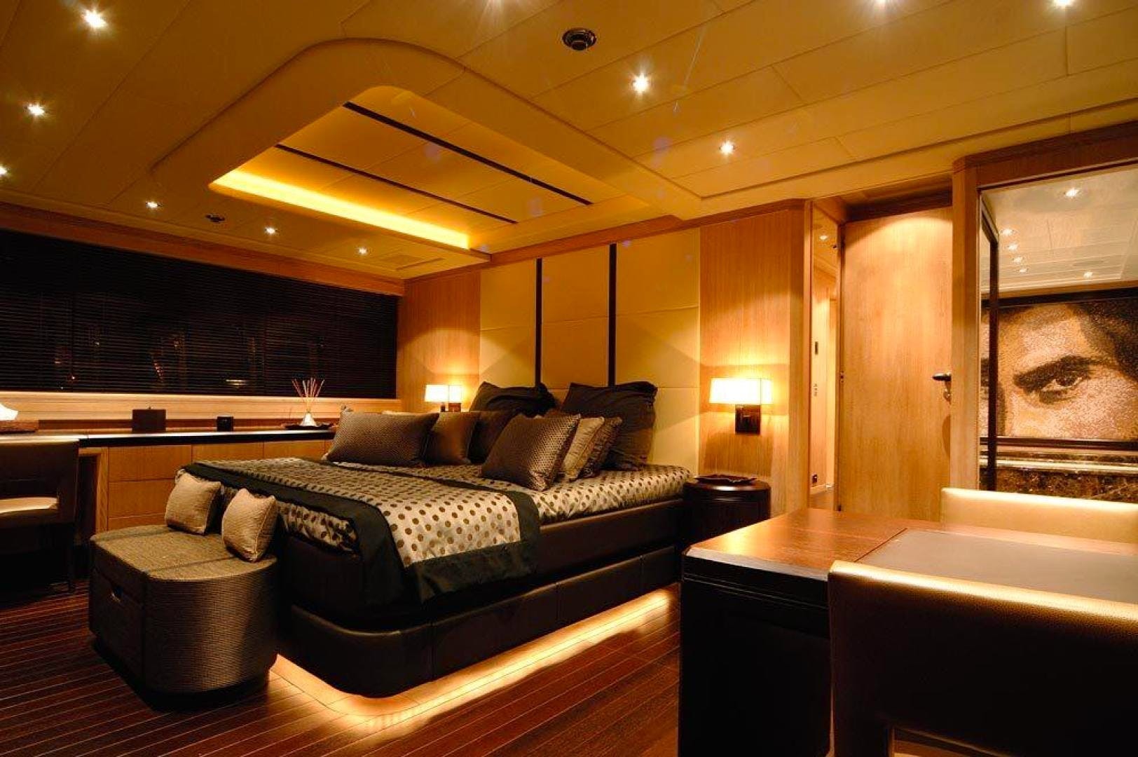 The interior is characterized by meticulous craftsmanship and luxurious furnishings, accommodating up to 9 guests in 4 lavish cabins, including a master suite designed for ultimate privacy. Advanced stabilization systems ensure a smooth cruising experience, maintaining maximum comfort even in varying sea conditions. Every technical aspect is engineered to provide a stable and refined environment, ideal for those who value both speed and tranquility during their stay on board.